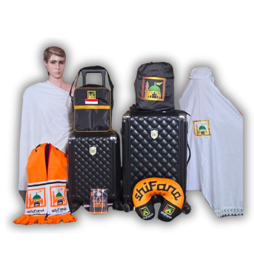 Paket All In ✓Koper Ukuran 24 & 18 ✓Tas Paspor ✓Tas Sendal ✓Mukena ✓Kain Ihrom ✓Syal ✓Bantal Leher